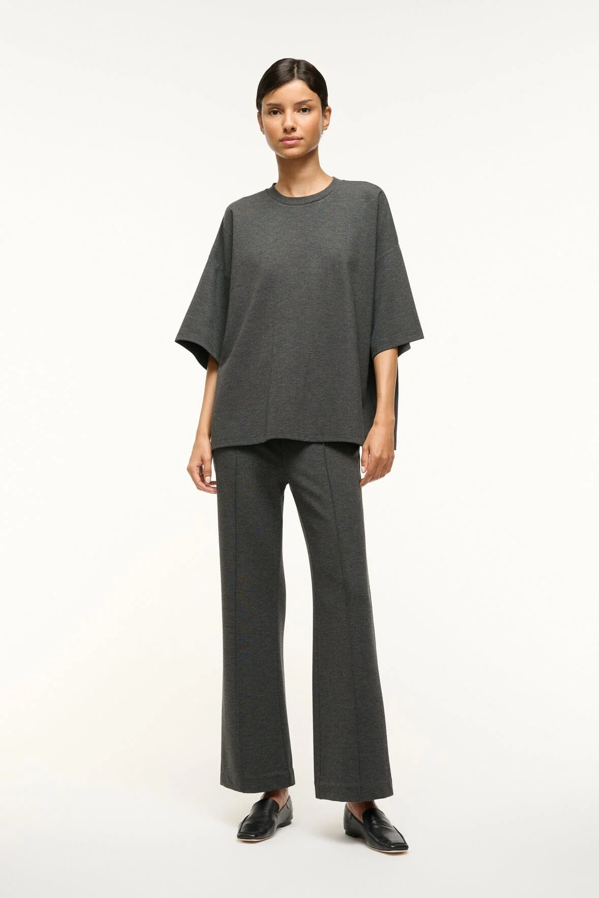 An oversized crewneck shirt in our ponte fabric with a rib neck trim. The Capsule Top is a perfect travel day essential when paired with our Knack Pant.