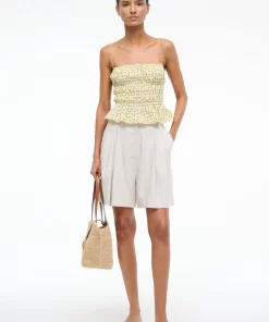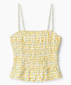 The Ayla is a cotton poplin cami with a smocked bodice and elastic neckline. The Ayla is slightly cropped and features spaghetti straps.