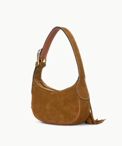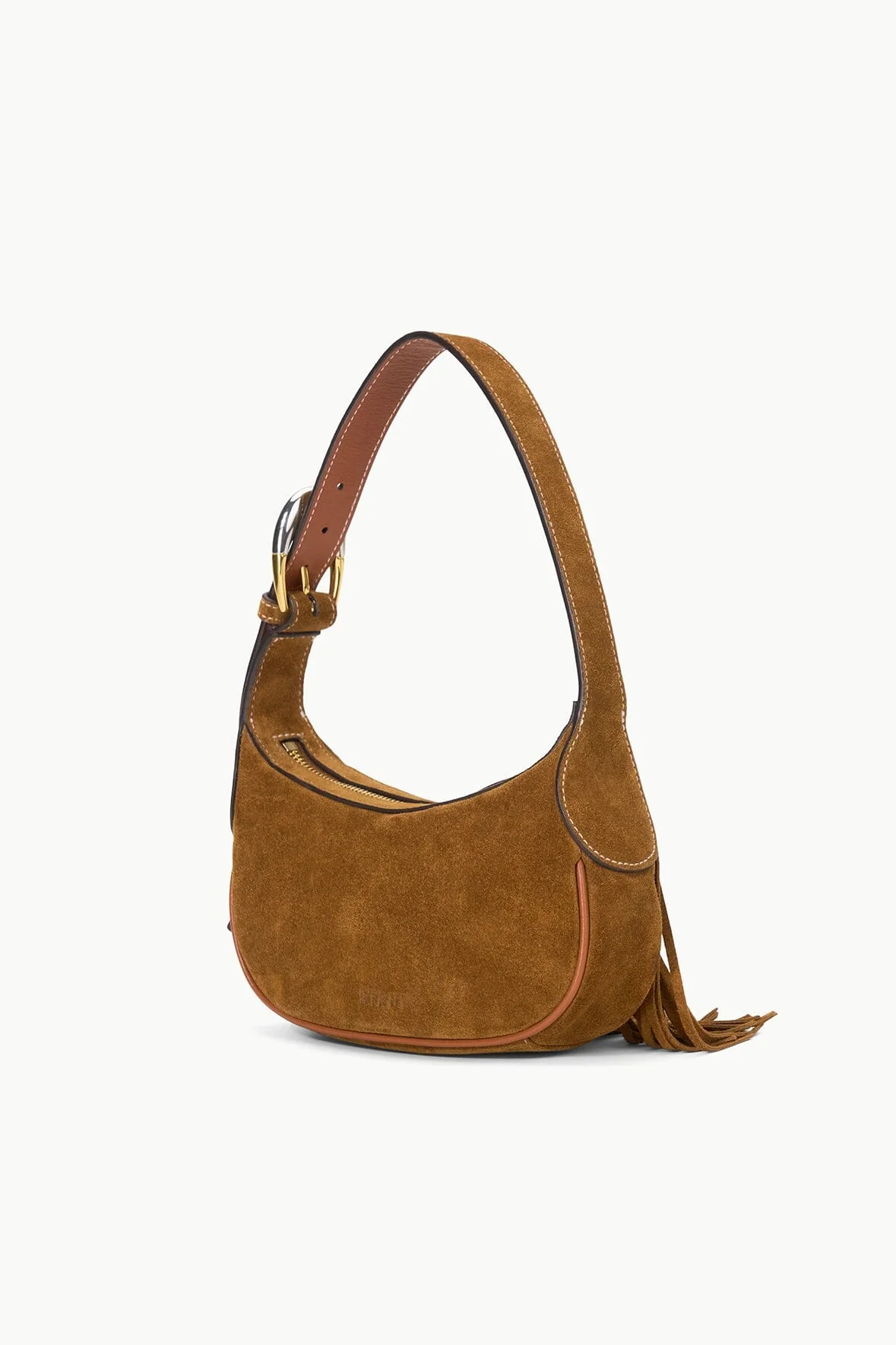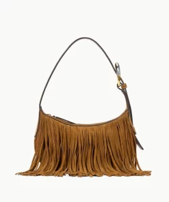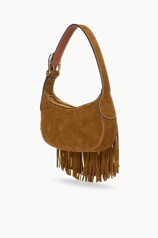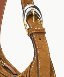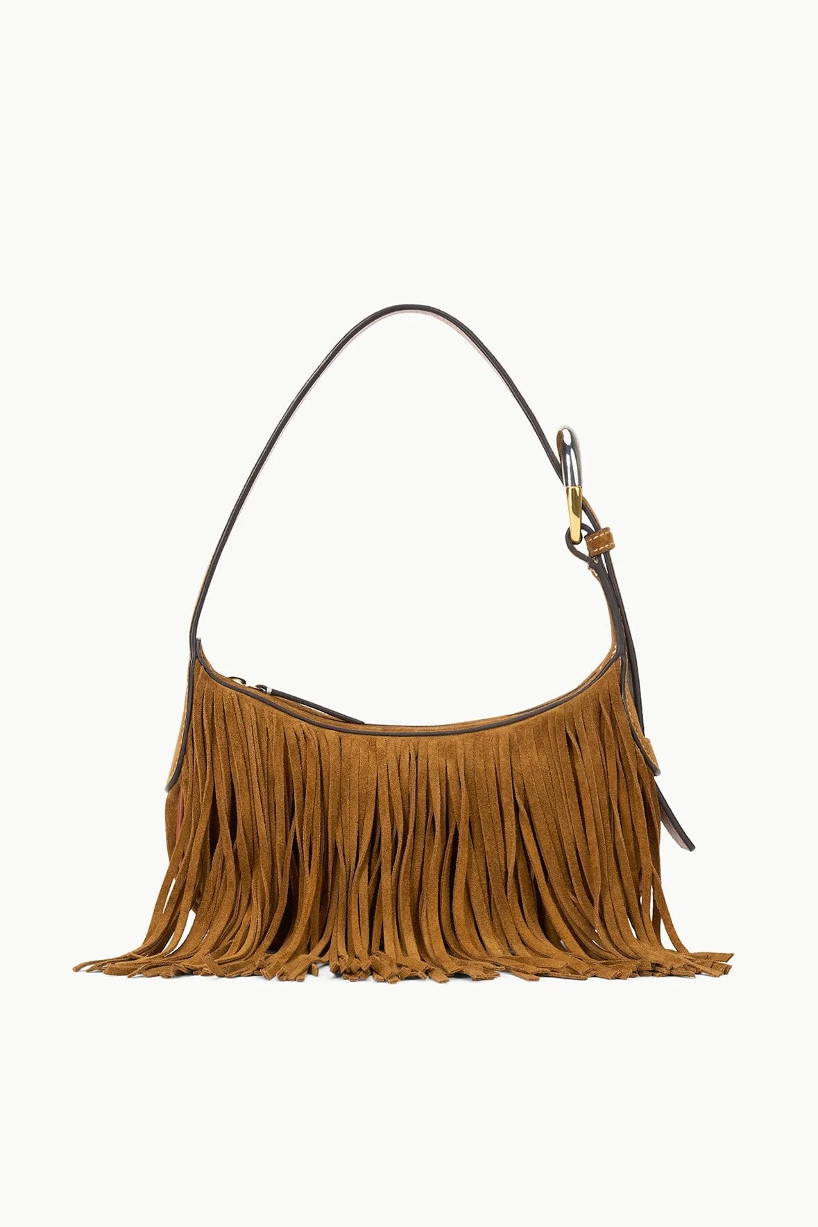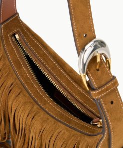 Updated in fringed suede, our latest shoulder shoulder bag features a moon-buckle hardware detail and a top-zip.