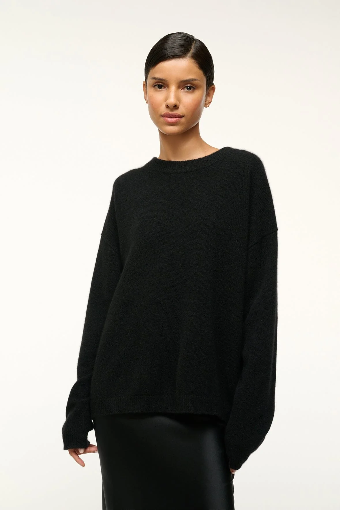 Final Few Staud SERRANO CASHMERE RELAXED CREW BLACK – Stylish & Comfortable