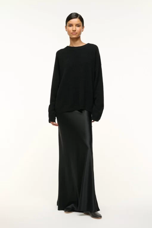 Final Few Staud SERRANO CASHMERE RELAXED CREW BLACK – Stylish & Comfortable