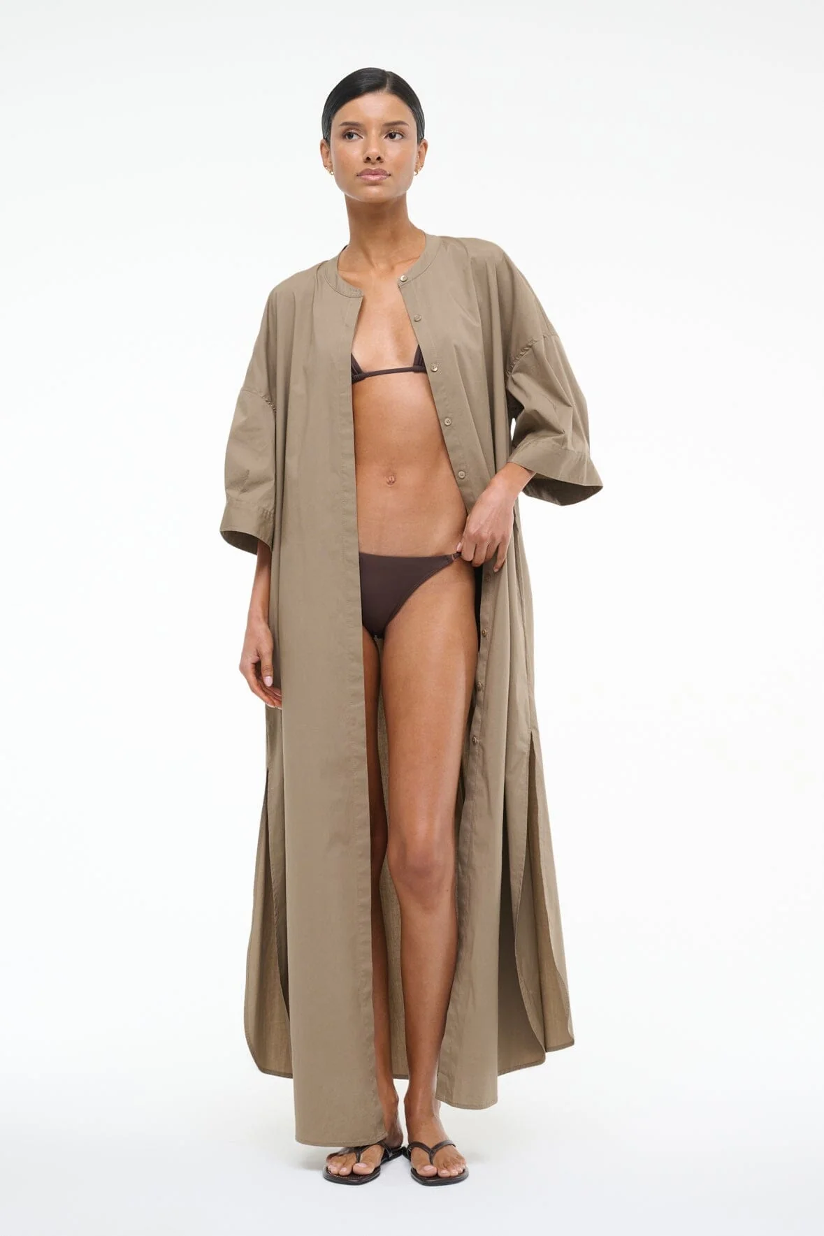The Enzo Maxi Dress is a versatile flowy maxi dress in our cotton poplin. This dress features a 3/4 length sleeve and hidden front buttons. You can style the dress with or without a belt, or even wear it open as a swim coverup.