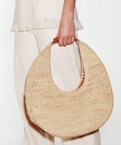 An oversized addition to our Moon family, the Large Raffia Moon is the perfect vacation tote. This style is made from hand-woven natural raffia and is fully unlined, offering a relaxed silhouette.