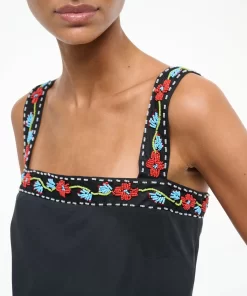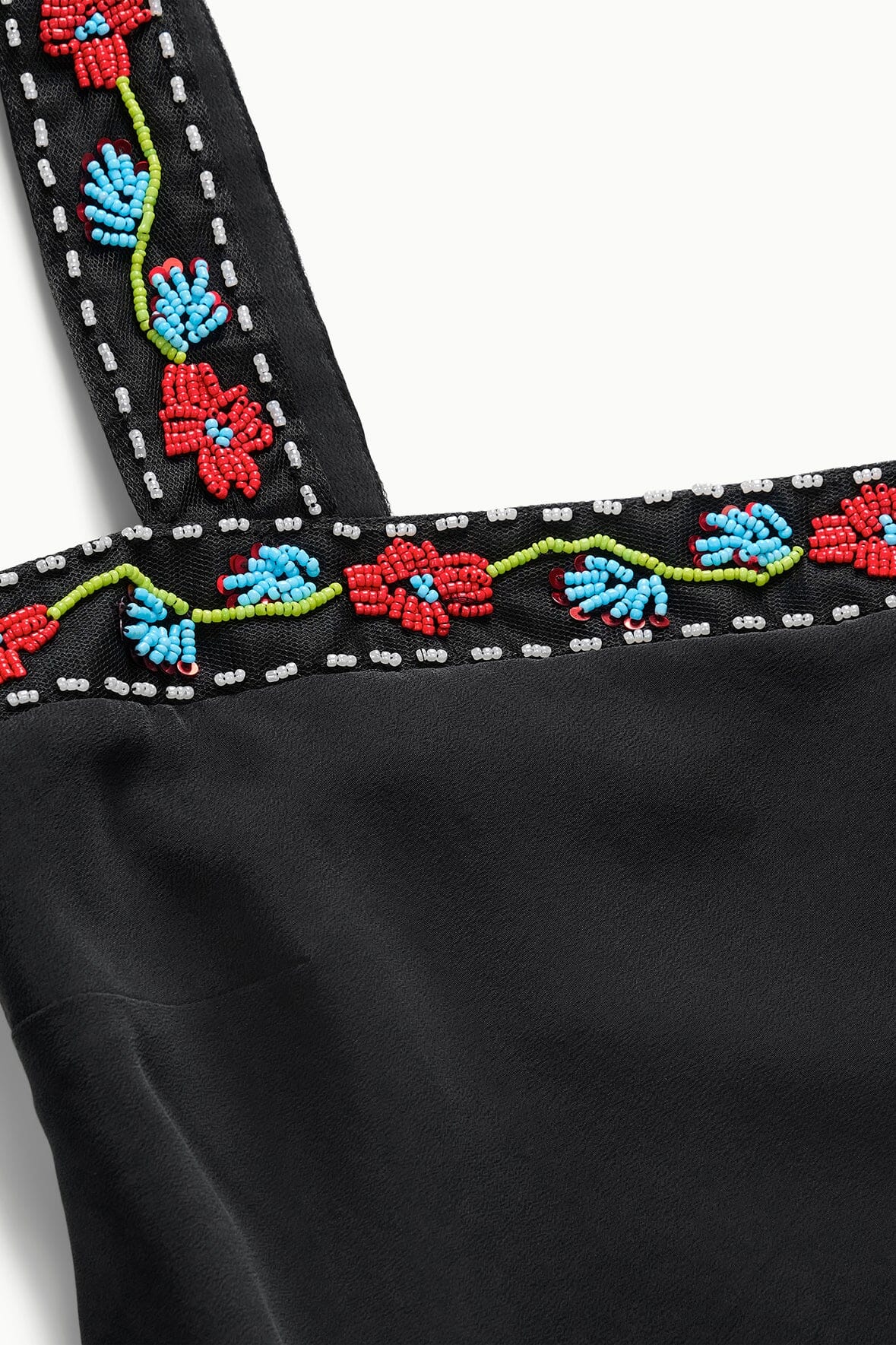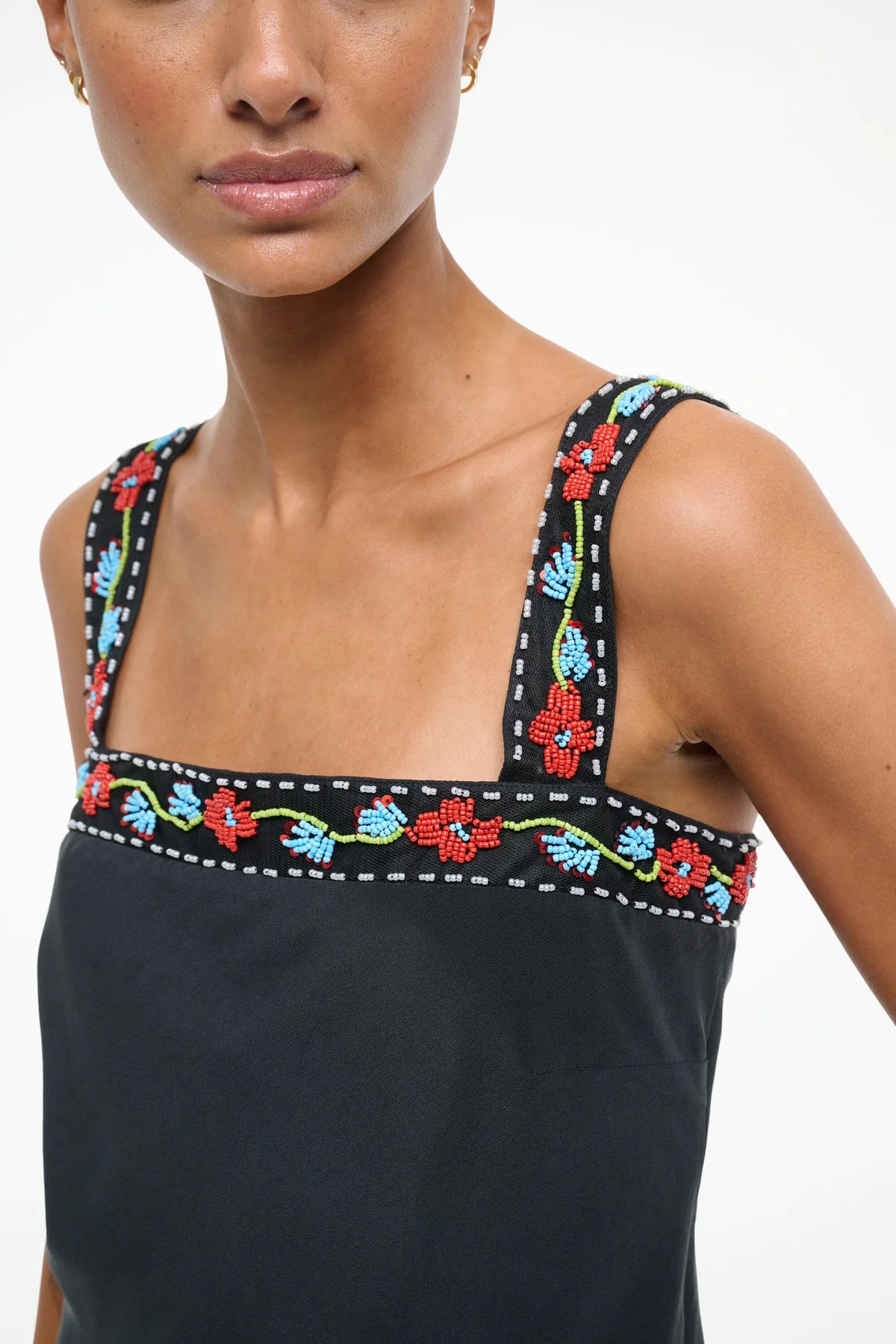 The Veronica Silk Top is a beaded cami with a straight neckline and thin straps. Pair it with the Von Silk Short for a matching set.