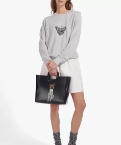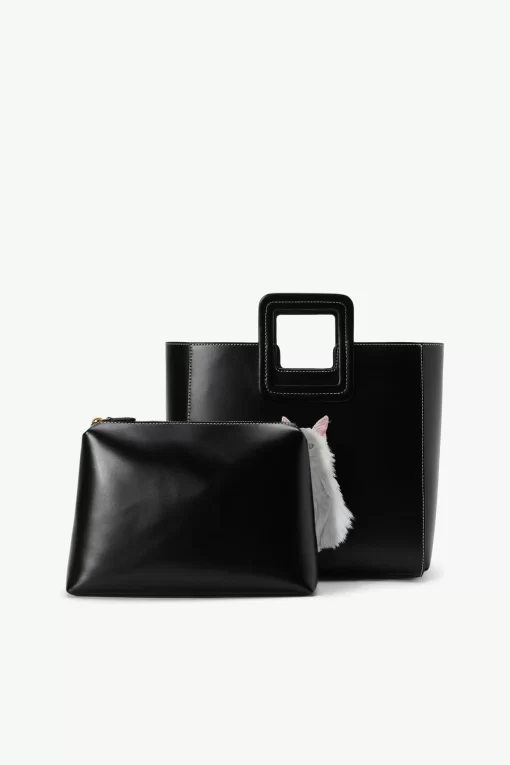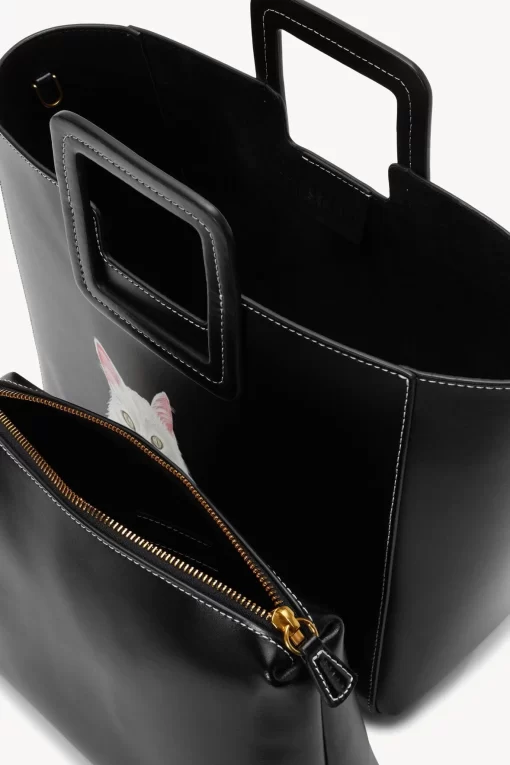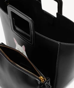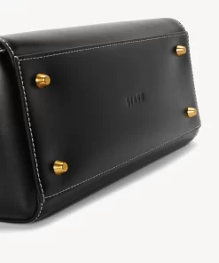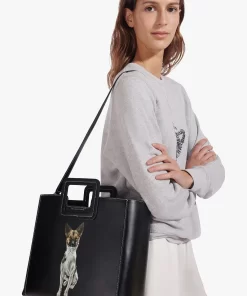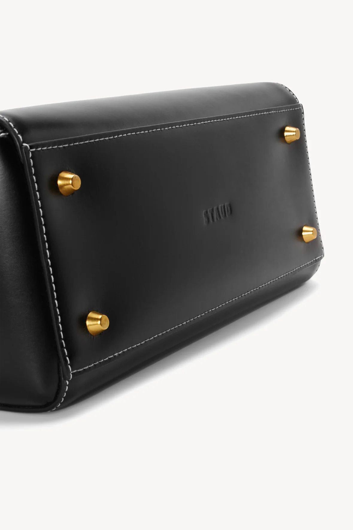 The Shirley Leather Bag features a zipper closure, antique gold hardware, and suede lining.